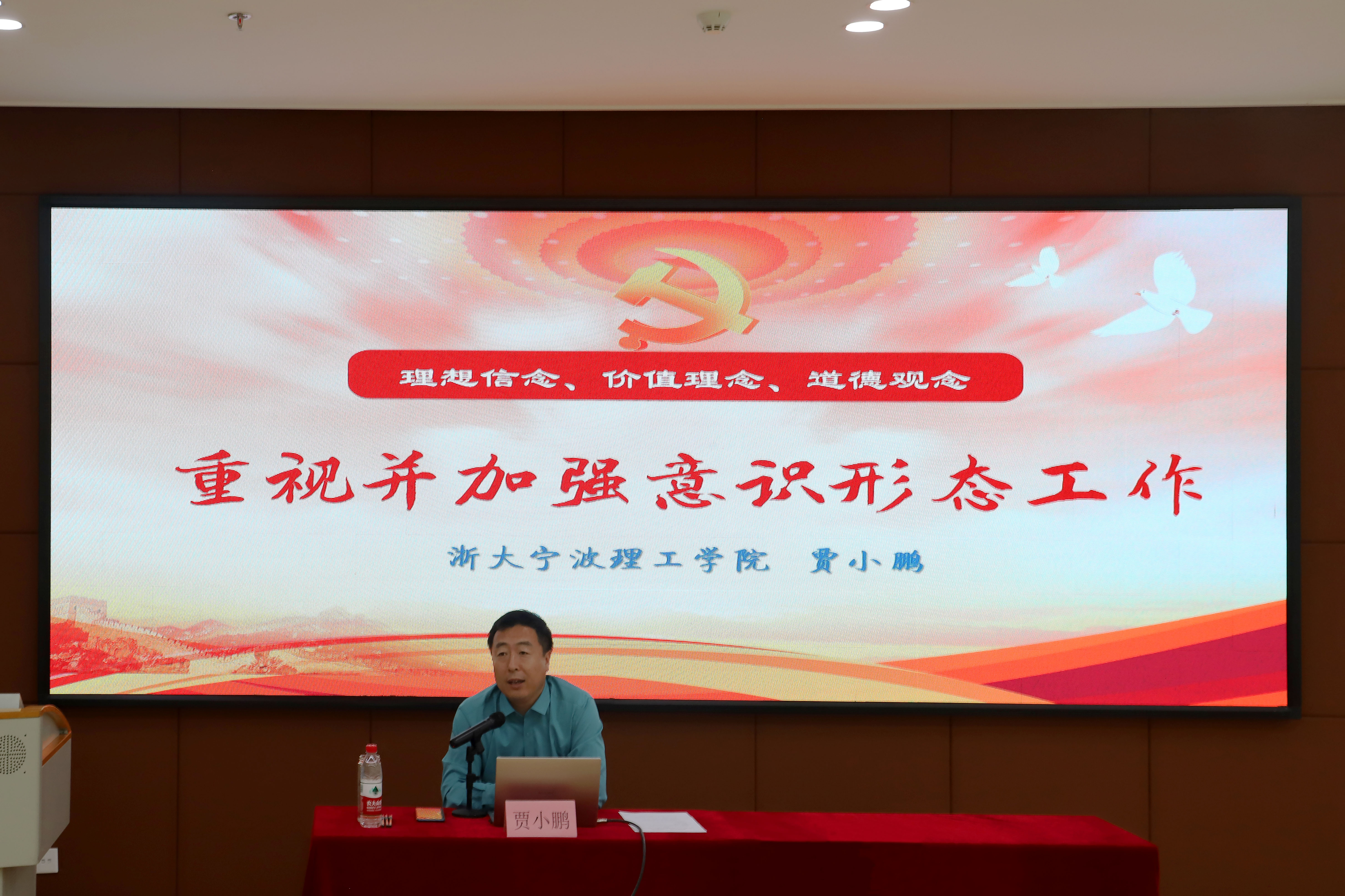 4月22日下午,学院“意识形态工作培训会暨员工素养提升工程第二期培训”在学术交流中心201会议室召开。学院领导和全体教职员工参加会议。宁波经理学院执行院长金朝晖主持培训会,浙大宁波理工学院继续教育学院副院长贾小鹏作《理想信念、价值理念、道德观念——重视并加强意识形态工作》专题辅导报告。