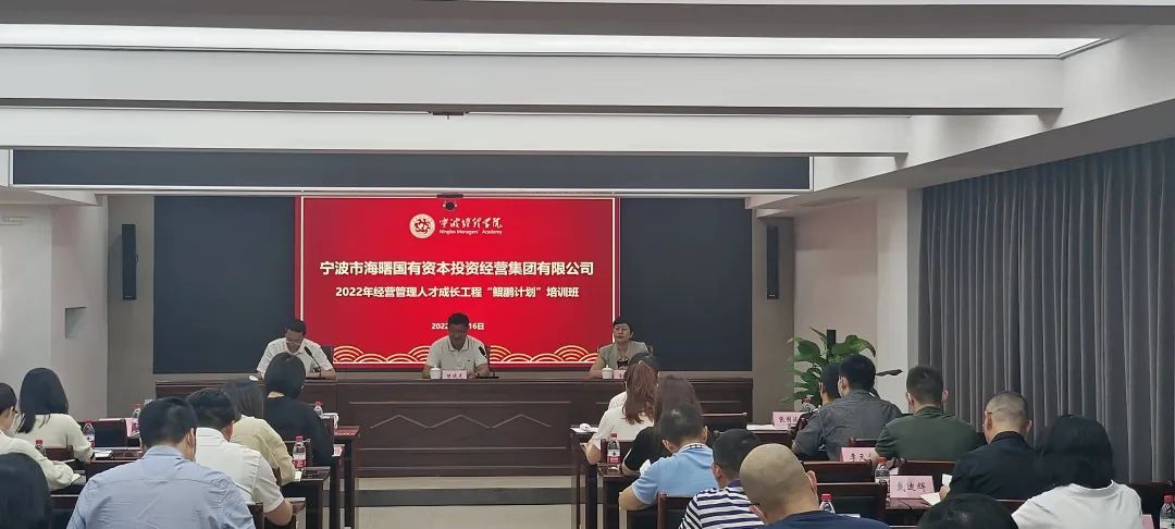 9月16日,宁波市海曙国有资本投资经营集团有限公司2022年经营管理人才成长工程“鲲鹏计划”培训班开班仪式在海曙国投629会议室举行。集团党委书记、董事长陈晓虎,党委副书记唐震毅,宁波经理学院执行院长金朝晖出席了开班仪式。来自海曙国投的近50位中高层领导干部参与了本次培训。