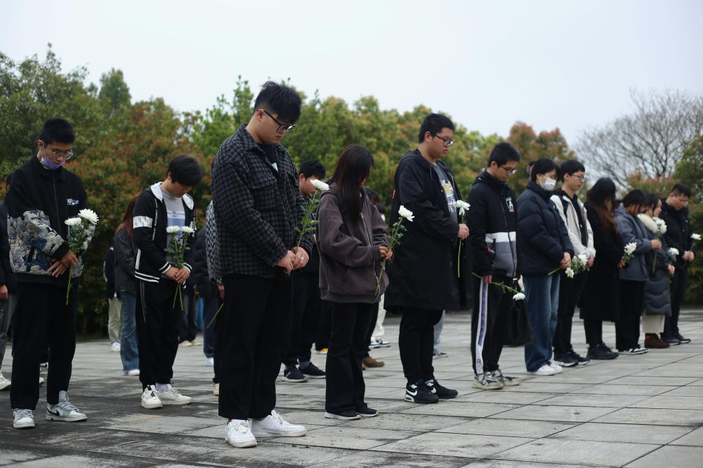 同学们手捧菊花站在革命烈士纪念碑前集体默哀,并向烈士敬献菊花,表达对革命烈士崇高的敬意和深切的缅怀。祭扫仪式结束后,大家参观了纪念馆内陈列的各种珍贵文物、文献、照片等资料。