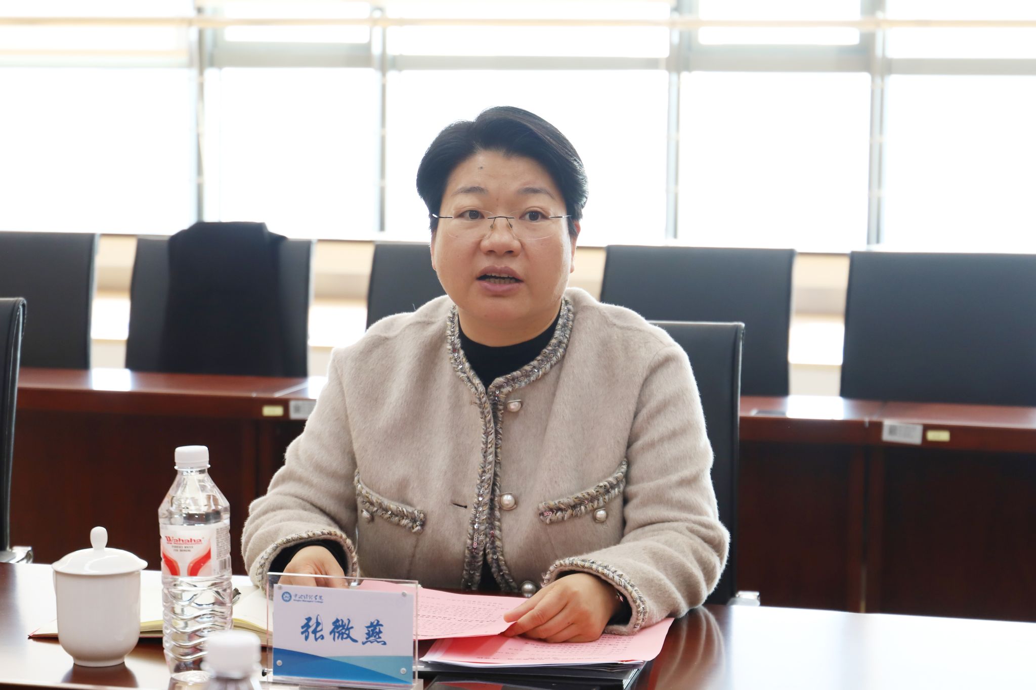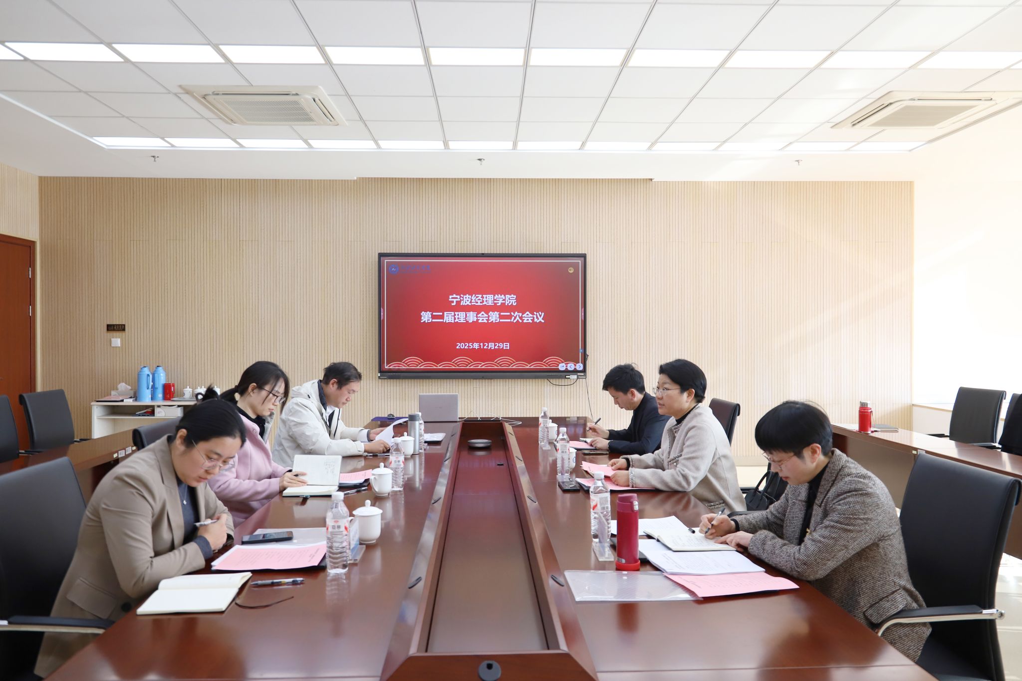12月29日,宁波经理学院召开第二届理事会第二次会议,宁波人才发展集团党委委员、副总经理张微燕,宁波经理学院院长吴春,宁波人才培训有限公司总经理王校军,宁波人才发展集团综合部副总经理姚晓萍,宁波经理学院副院长章斌,宁波经理学院财务负责人赵颖琦等参加会议。会议由宁波经理学院理事长张微燕主持。