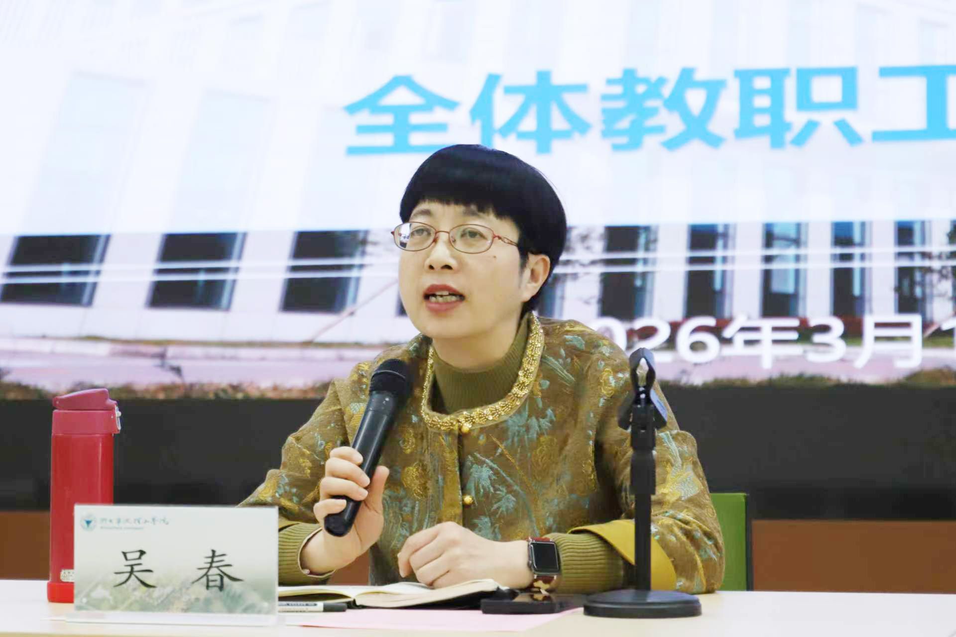 在听取各部门下一步工作计划后,吴春提出三点要求:一是认清形势、抢抓机遇,增强工作前瞻性与主动性,积极谋篇布局、主动出击,牢牢把握发展主动权;二是聚焦目标、明晰路径,细化工作举措、压实工作责任,推动各项工作提质升效;三是鼓足干劲、凝聚合力,上下同心、真抓实干,形成推动学院高质量发展的整体合力。吴春强调,要坚守底线思维,从严从细抓好安全稳定各项工作,切实筑牢安全防线,为学院事业持续健康发展提供坚实保障。