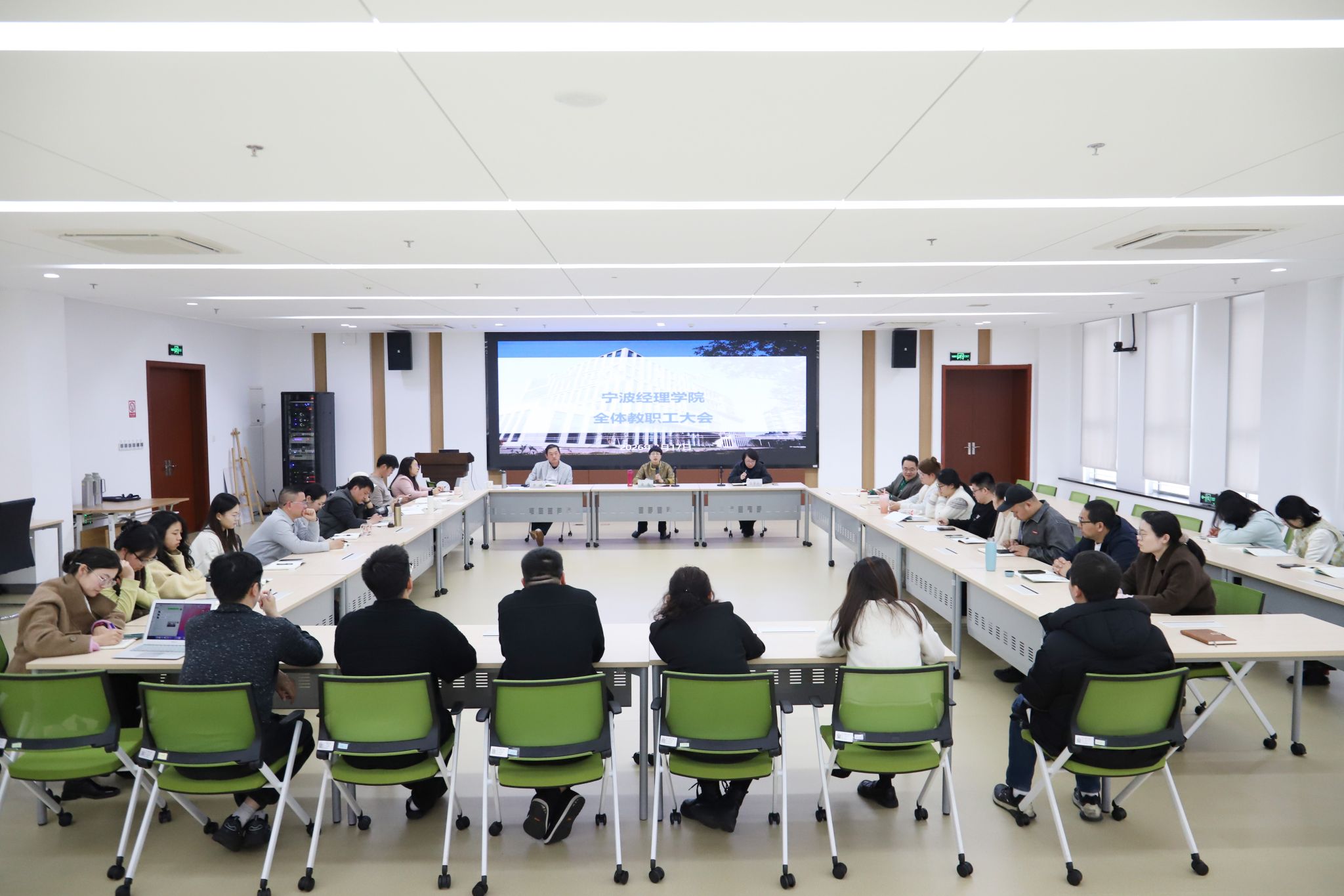 3月17日,宁波经理学院召开全体教职工大会,院长吴春作下一步工作部署,副院长章斌及全体教职工参会。